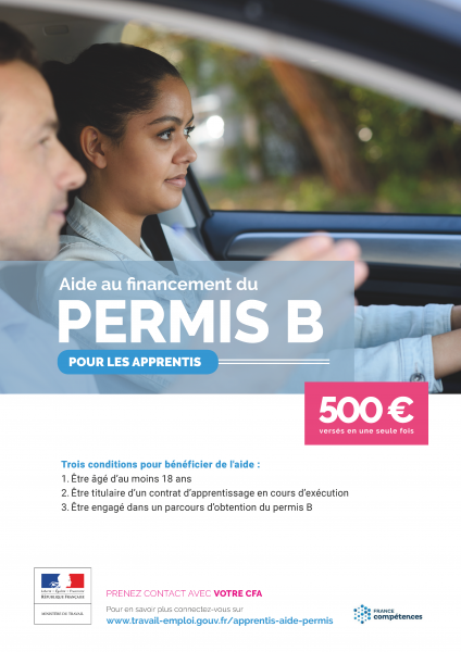 Les apprentis peuvent bénéficier d’une aide forfaitaire de 500 € pour financer tout ou partie de leur permis de conduire.